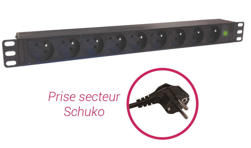 BANDEAU PDU 19' 1U, 9 PRISES FR AVEC VOYANT LUMINEUX