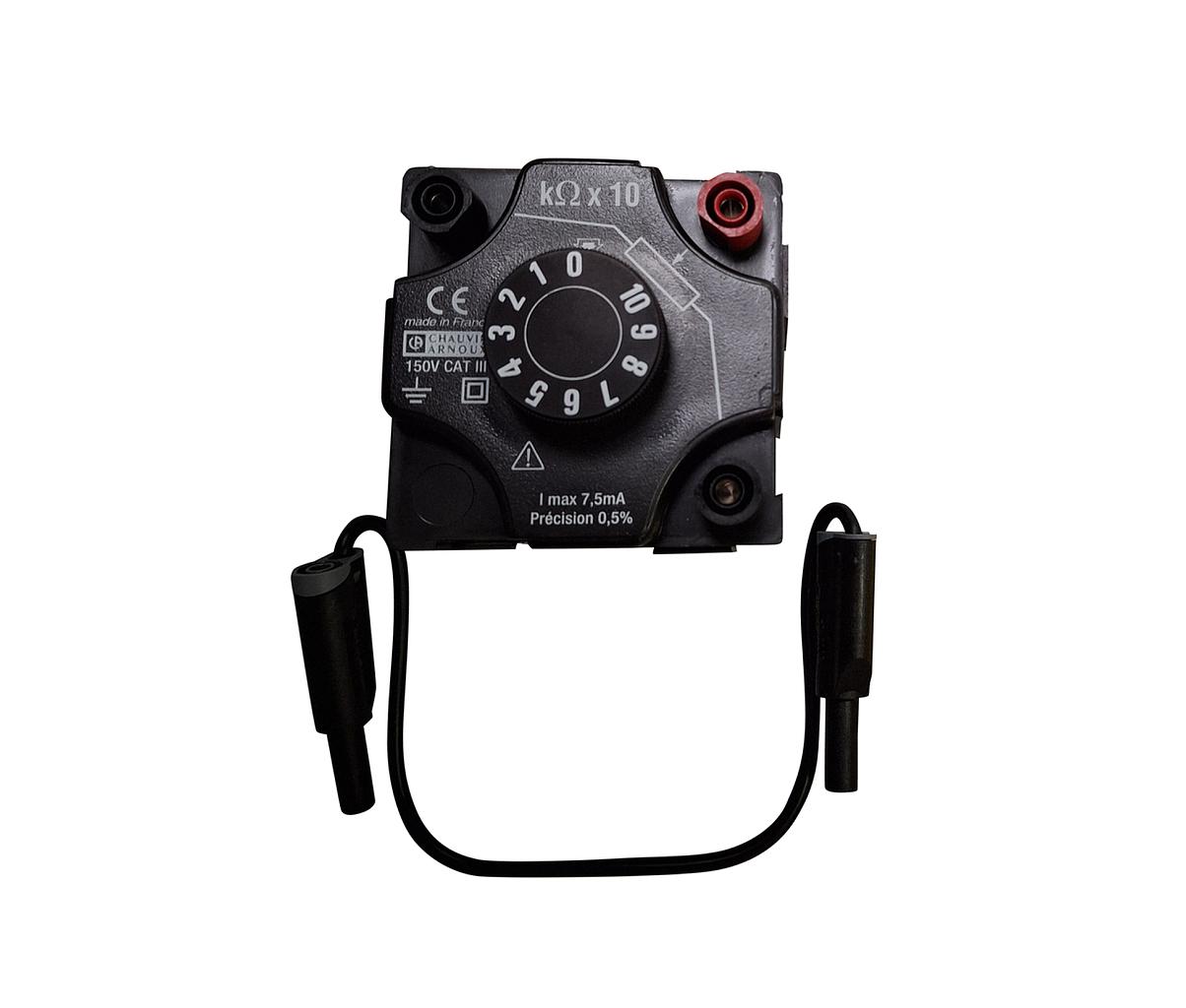 Boite à décade Résistances 10...100k Ohm - sélection par commutateur rotatif - borne de terre détrompée mâle