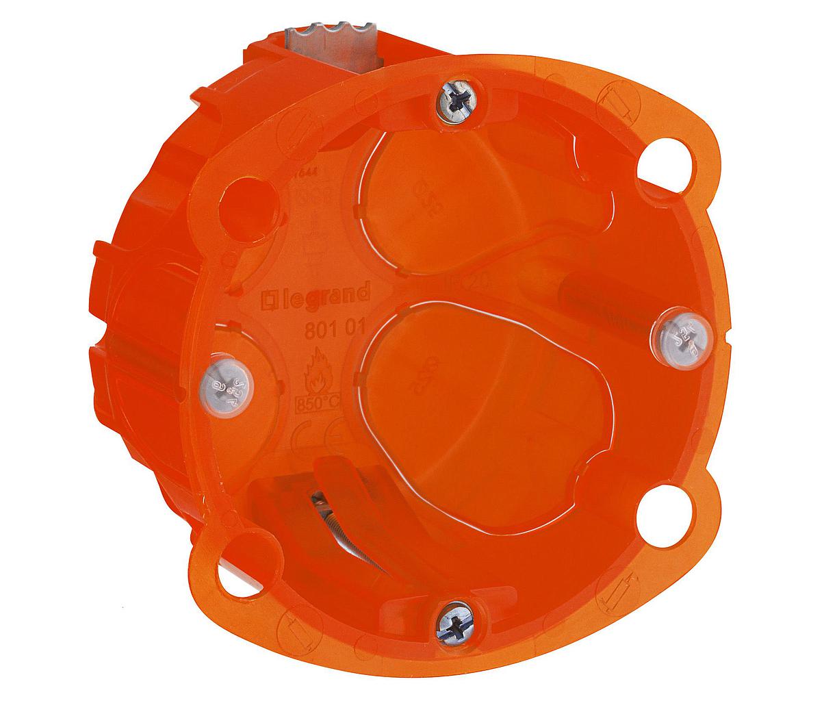 Boîte à encastrer Batibox multimatériaux 1 poste profondeur 40mm diamètre de perçage 67mm - équipée d'étriers métalliques imperdables - livrée avec vis équipées de cache de protection