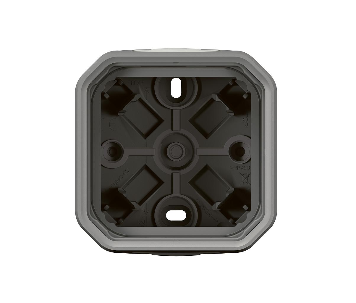 Boîtier 1 poste étanche IP55 Plexo pour l'installation en apparent de toutes les fonctions Plexo, équipé de 2 embouts à membrane souple 1 entrée - finition gris