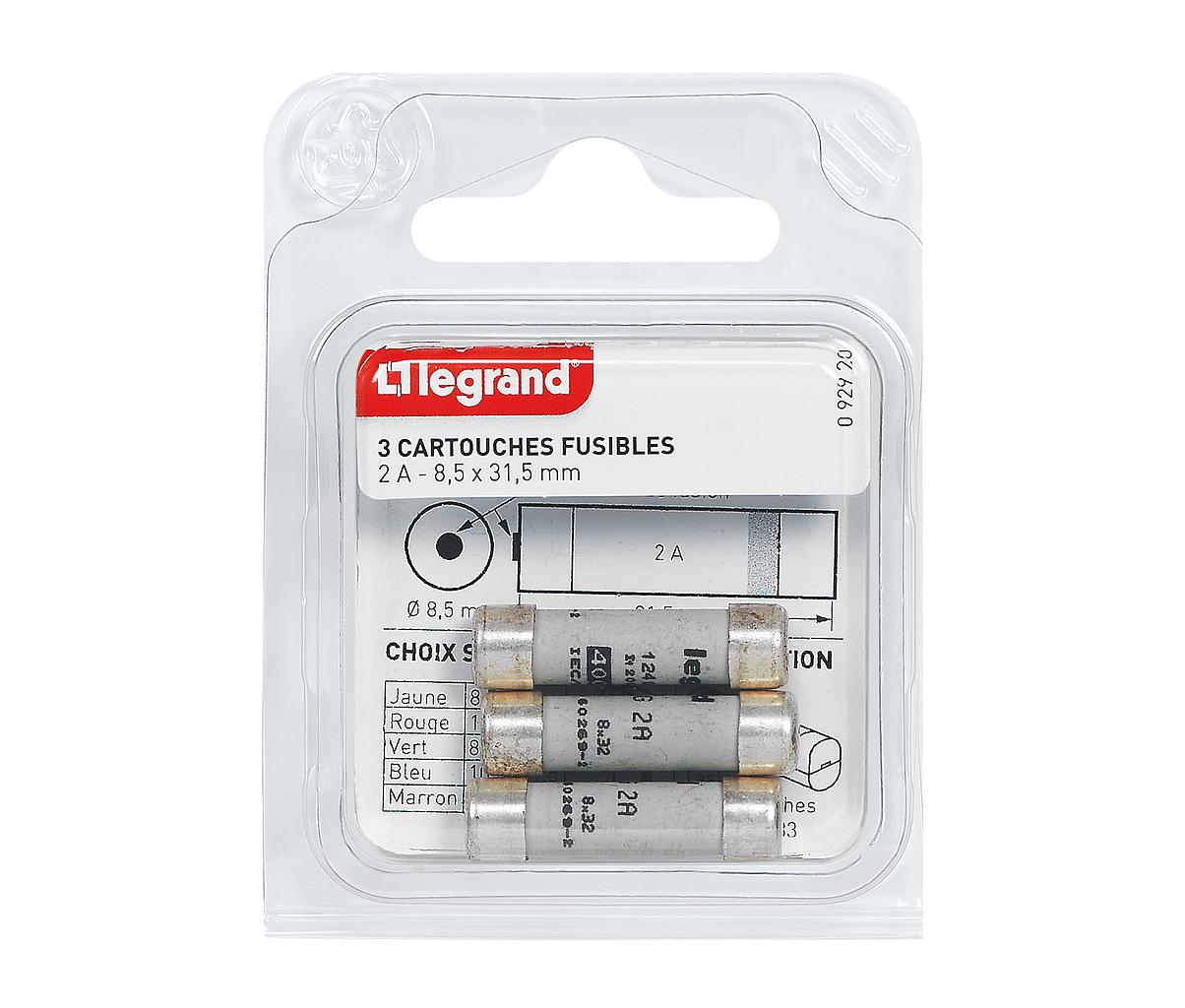 Lot de 3 cartouches fusibles normalisées pour porte-fusibles - avec témoin de fusion 8,5x31,5mm - 2A 230V~ conforme à la norme NF
