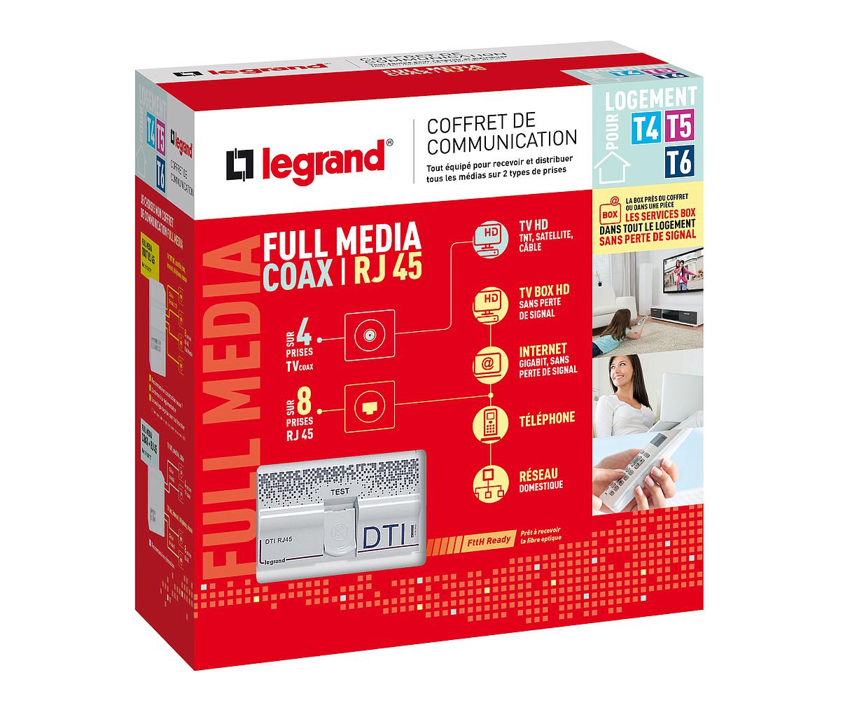 Coffret de communication Full Media coaxial et RJ45 pour T4 à T6