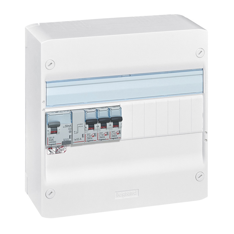 Coffret précâblé Drivia 1 rangée : 1 inter diff 63A + 3 disjoncteurs -avec porte