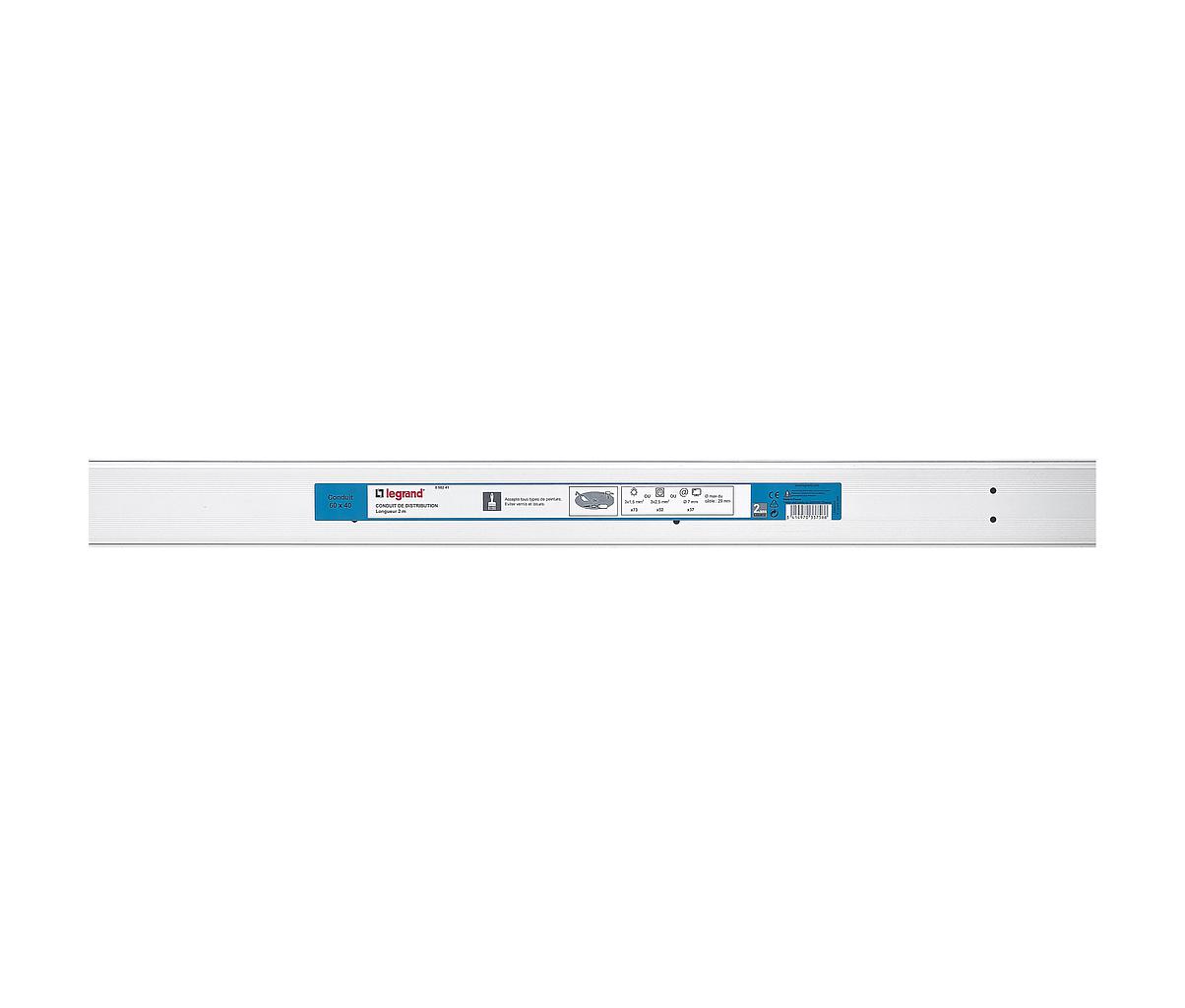 Conduit de distribution section 60x40mm longueur 2m pour câble Ø29mm maximum - blanc, accepte tous type de peinture - fixation par clou, colle ou vis