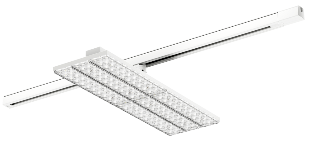 ExcellWS™ - Luminaire sur rail universel 3 allumages en aluminium et optique PMMA à 90° L.577xh.189mm à puissance commutable 40W/70W 4000K orientable 350° IP20 IK02 UGR19. Coloris blanc