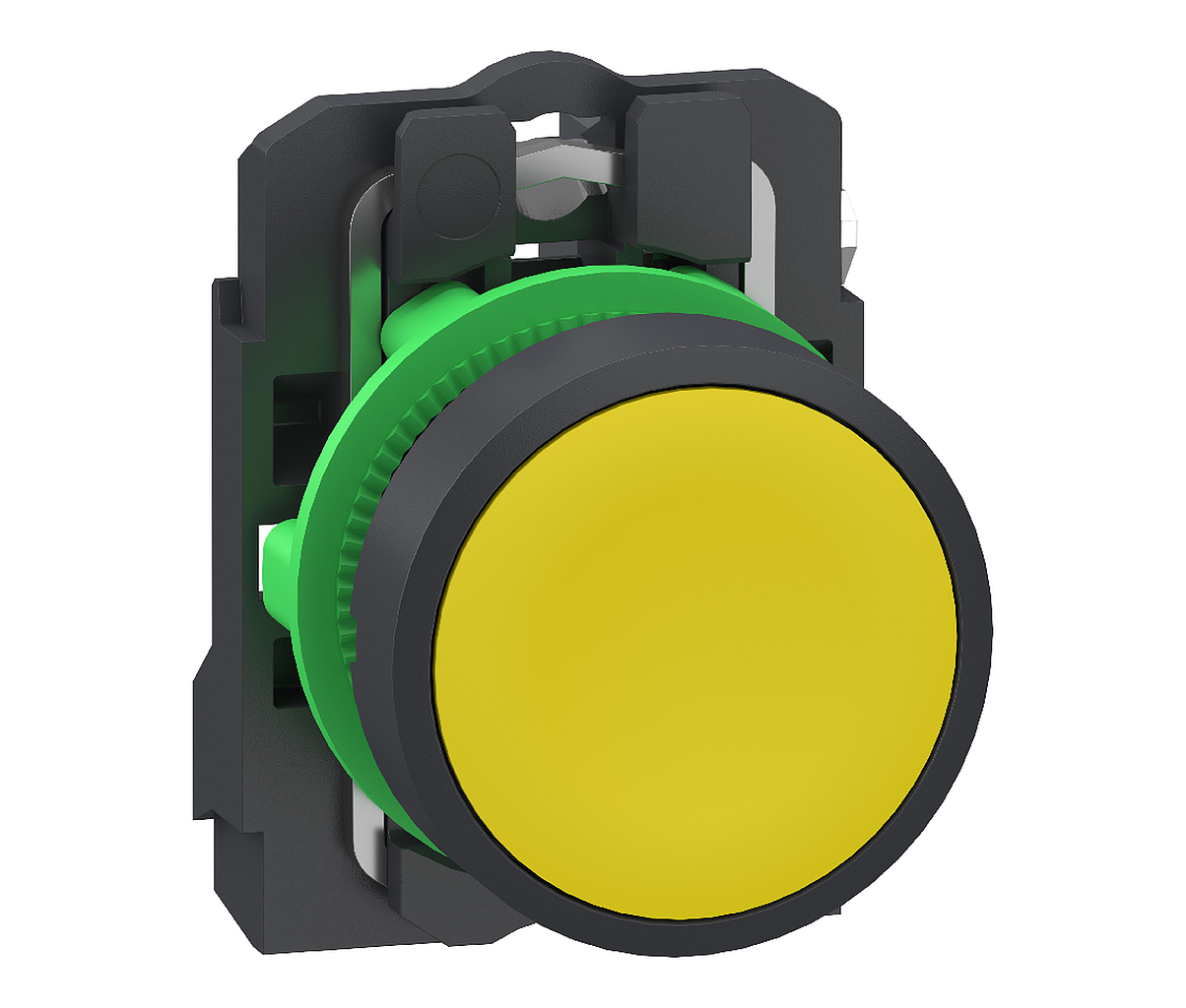 Harmony XB5 - bouton poussoir - à impulsion - poussoir affleurant - jaune - Ø22 - collerette dépassante - plastique noir - 1F - fixation Ø22 - raccordement par Push In