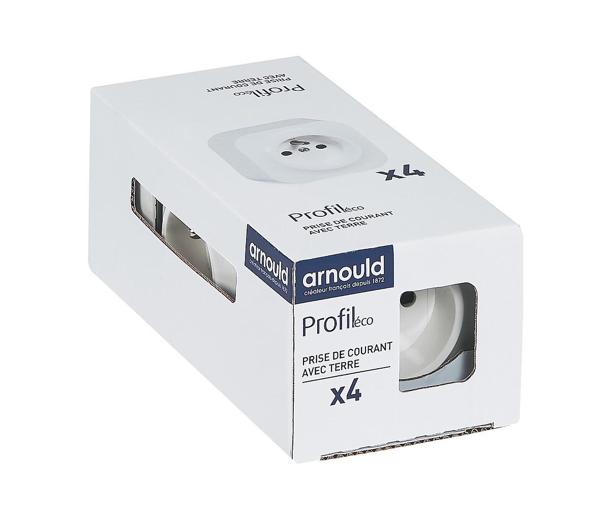 Lot de 4 prises de courant saillie avec terre Profil Eco complet - blanc