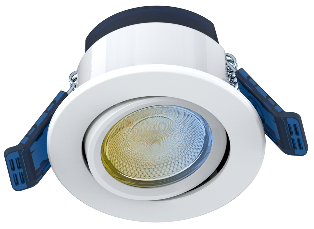 ONExPRO™ - Spot coupe-feu IP65 basculant RE2020/isolant 240V à couleur et puissance commutables 3.5W/5.5W/7W 60° CRI>90 2700K/3000K/4000K gradable avec collerette en aluminium blanc
