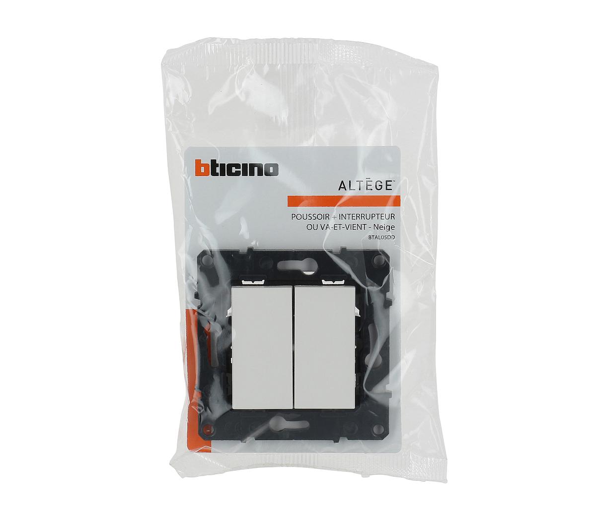 Poussoir 6A + Interrupteur ou va-et-vient Altège 10A - finition Neige