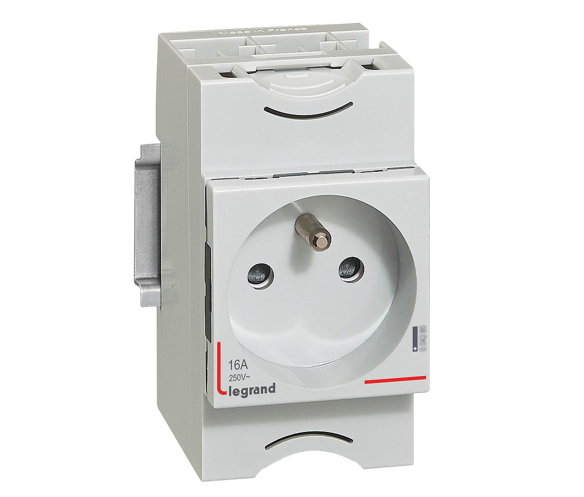 Prise de courant avec terre 10A et 16A - 2,5 modules DIN
