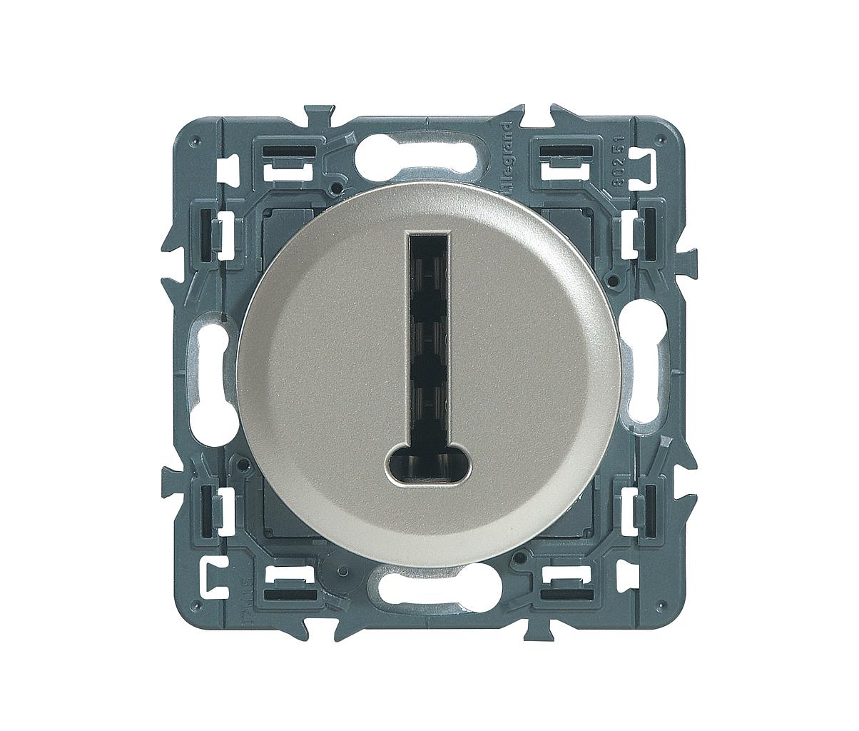 Prise téléphone 8 contacts en T Céliane - livrée avec support et enjoliveur finition titane, à équiper d'une plaque de finition