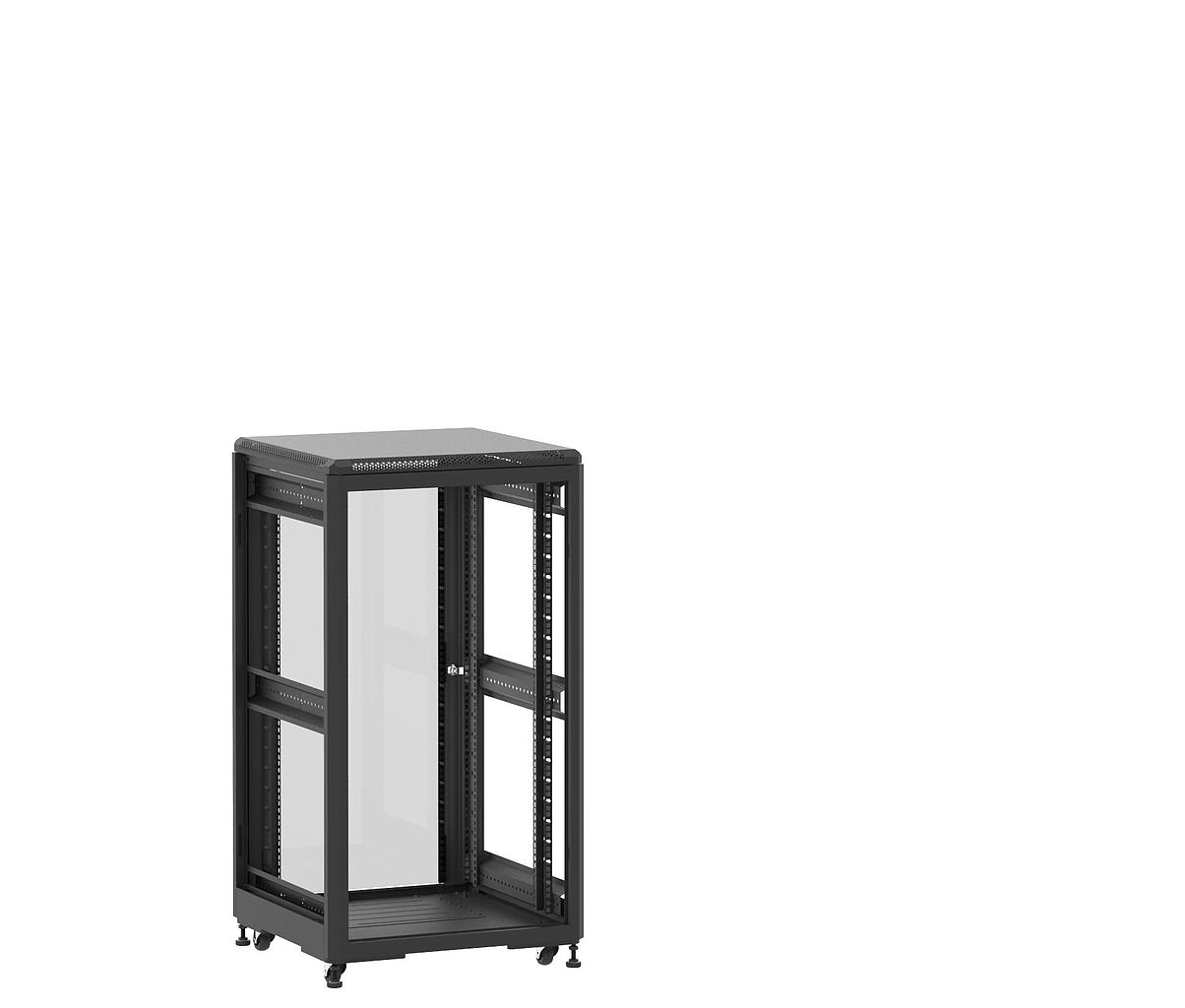 Baie en kit Ligne 500 21U 600x600mm, porte avant : Sans Porte, porte arrière : Simple Verre, sans panneaux latéraux